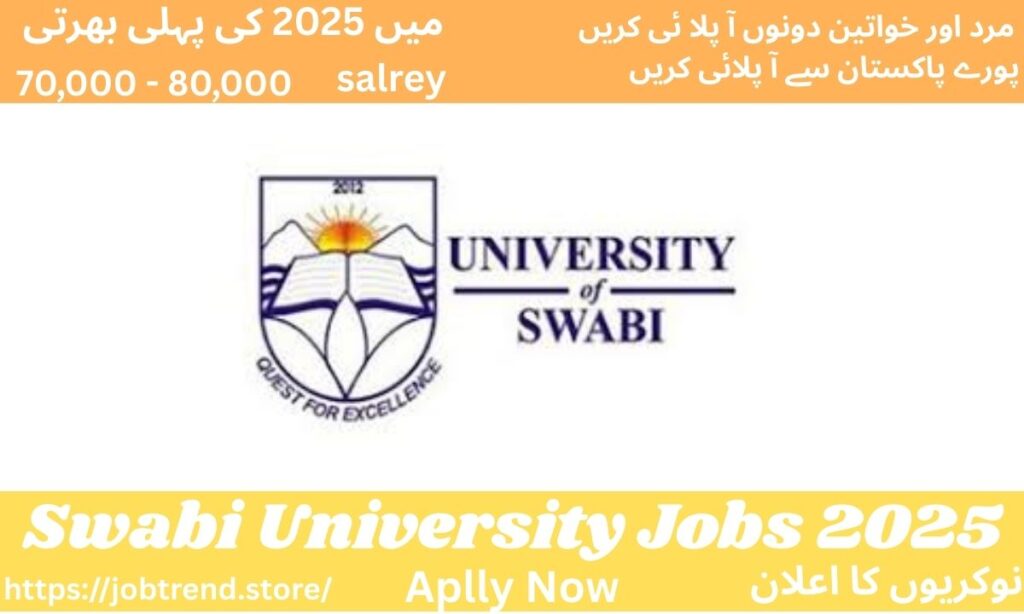 The University of Swabi Jobs 2025 includes academic and non-academic positions, ensuring that candidates from diverse educational backgrounds and skill sets have the opportunity to apply. With a strong focus on research, development, and innovation, Swabi University aims to hire individuals who are committed to excellence and passionate about education. If you’re ready to step into a meaningful and secure role, now is the time to apply!